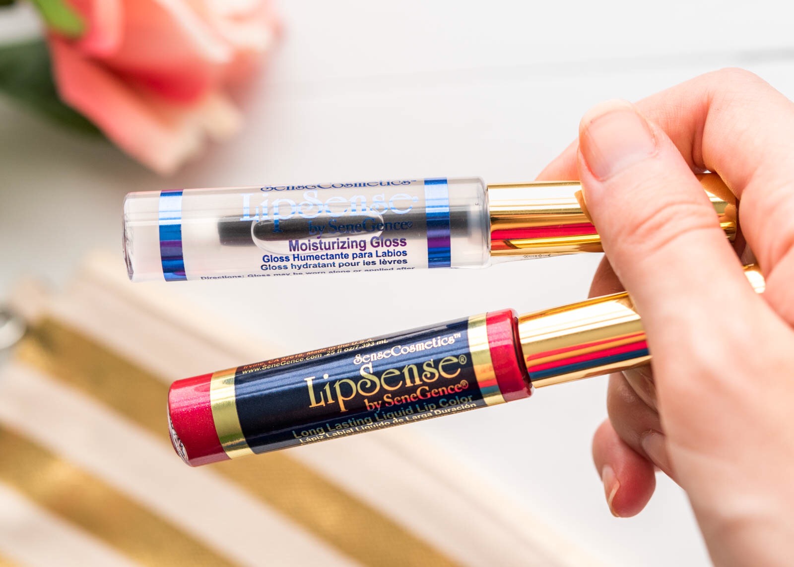 I’m sure you’ve seen the videos circulating around Facebook. A woman is shown with bright red, pink, or even black lipstick and proceeds to smear her lips onto mirrors, babies, her husband, her wine glass, and her fingers – only to show that her lipstick has not moved, transferred or smudged. Amazing, right? I thought so, too! And being the beauty junkie that I am, when I found out a friend had signed up as a distributor, I decided I needed to get my hands on this new LipSense product and try it out for myself.